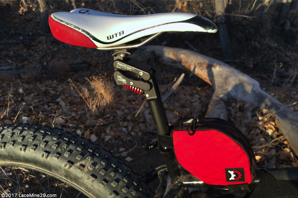 To keep some semblance of comfort I’ve installed a Bodyfloat post under my saddle. I’ve got a prosthetic disc in my neck and no desire to add another, and isolating myself as much as possible from the earth beneath my wheels might help keep it that way. The springs are coil and interchangeable for different rider weights and preferences. The ones that came with my post worked OK but I kept feeling it bottom out on moderate compressions. Rather than order new springs and wait for them to arrive, I dug into an old parts box and found a red spring from a Moots YBB. A crude bench test verified that it was firmer than the stock spring, so I hacksawed it down to size and installed it, figuring what the hell — it’s already here and hasn’t been used in over a decade. Turns out this brought the spring rate to perfect, and I haven’t seen a need to fiddle with it since.