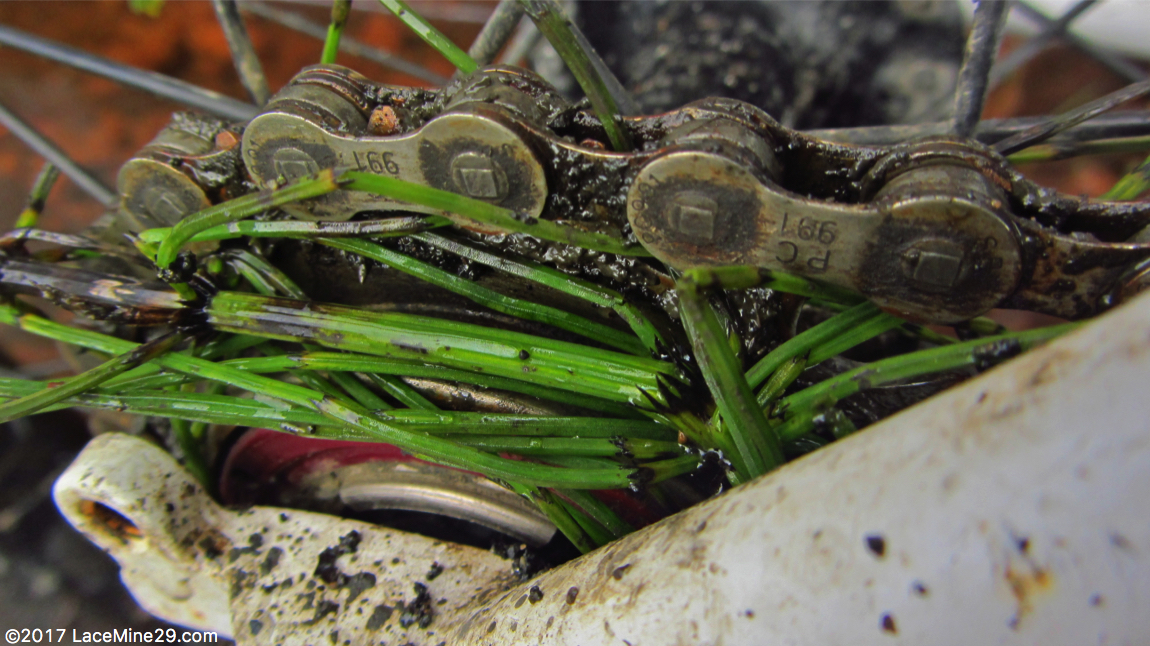 The ultimate off piste bike would have simple, effective brakes that could be easily removed if the trip didn’t require them, and that were somewhat easily repaired yet not that likely to be damaged. Said bike would need mud clearance in spades, and the ability to survive brief immersion. It would also need to have few (ideally zero) external cables or housings, such that you could bushwhack with it and not have to worry about snagging them.